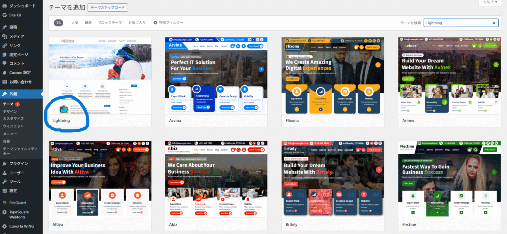 その2.テーマ選び:SEOに強い無料テーマ(例:Cocoon、Lightning)を使う