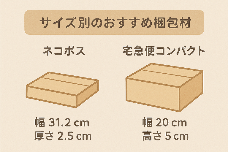 - 薄い衣類・本:A4サイズ厚さ3cmまでのネコポス/ゆうパケットポスト(全国一律料金で安い)