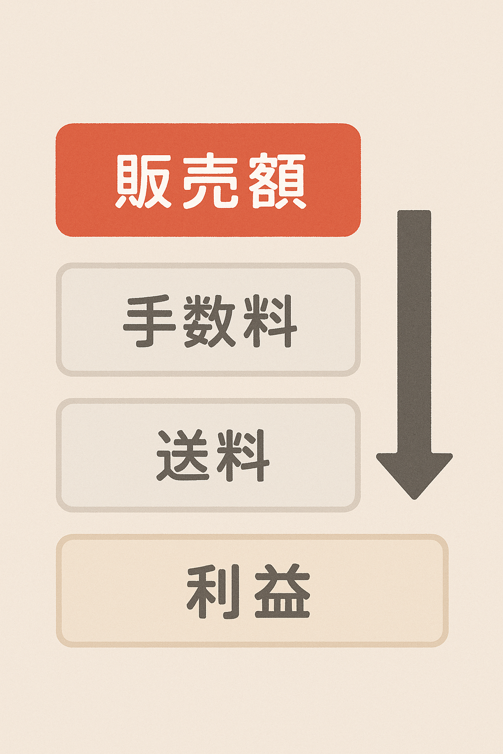 手取り利益 = 販売価格 – (販売価格 × 0.1) – 送料