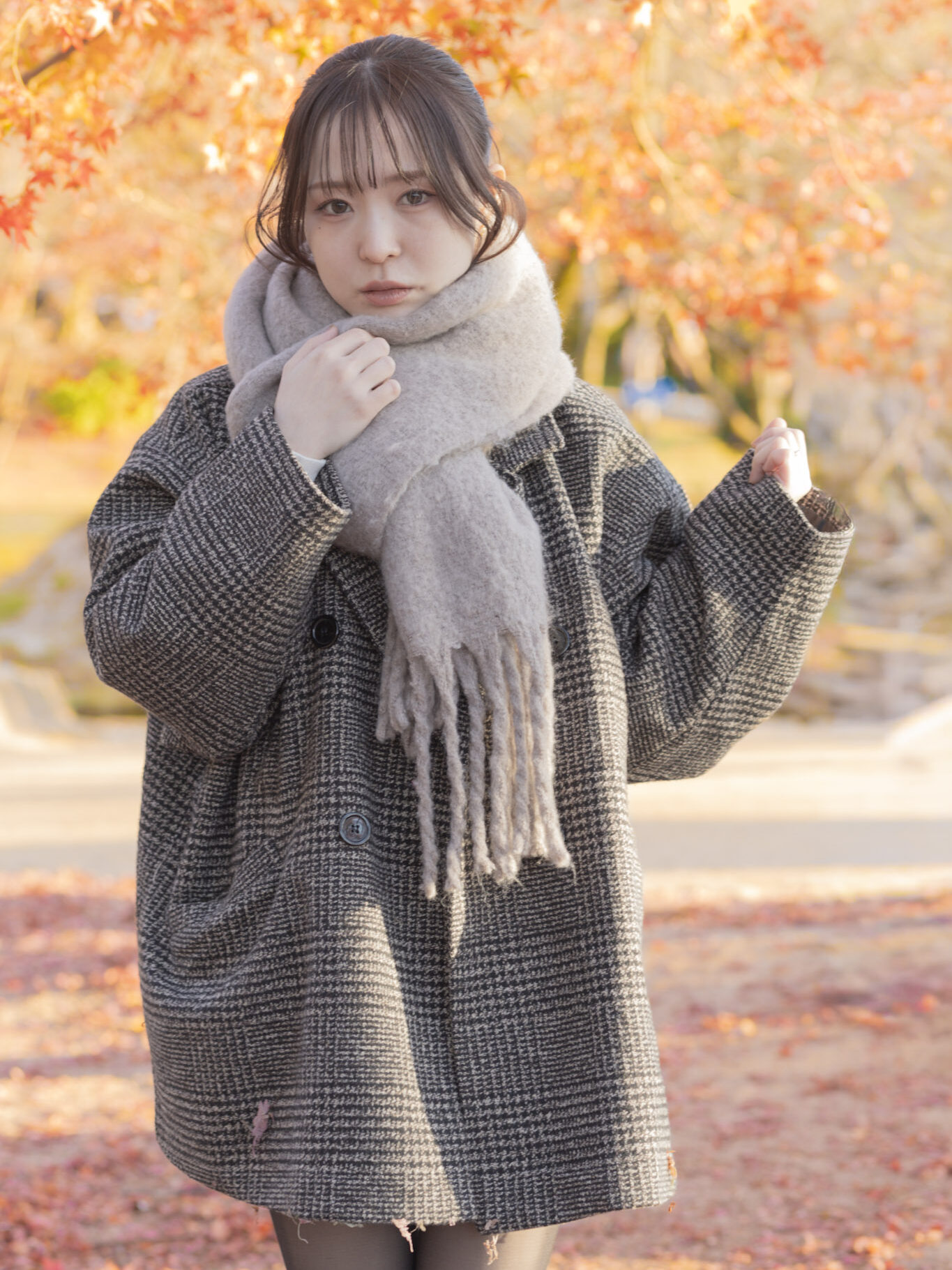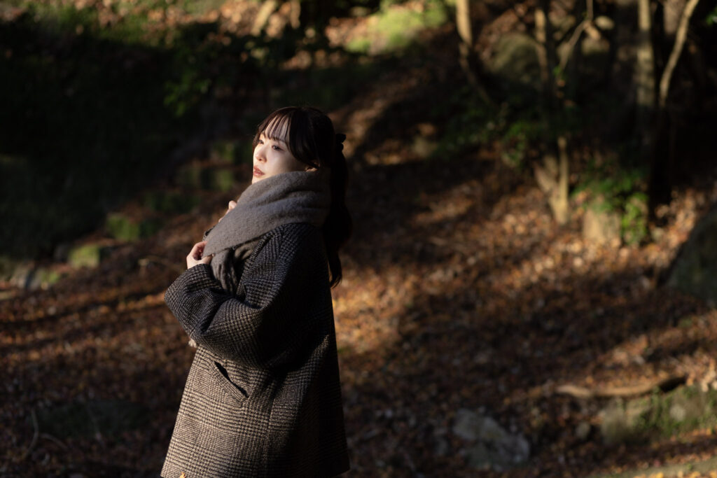 85mmは縦位置で構えたとき、頭から胸元(バストアップ)や、少し引いて膝上くらいまでのショットが無駄なくスッキリ収まる画角です。